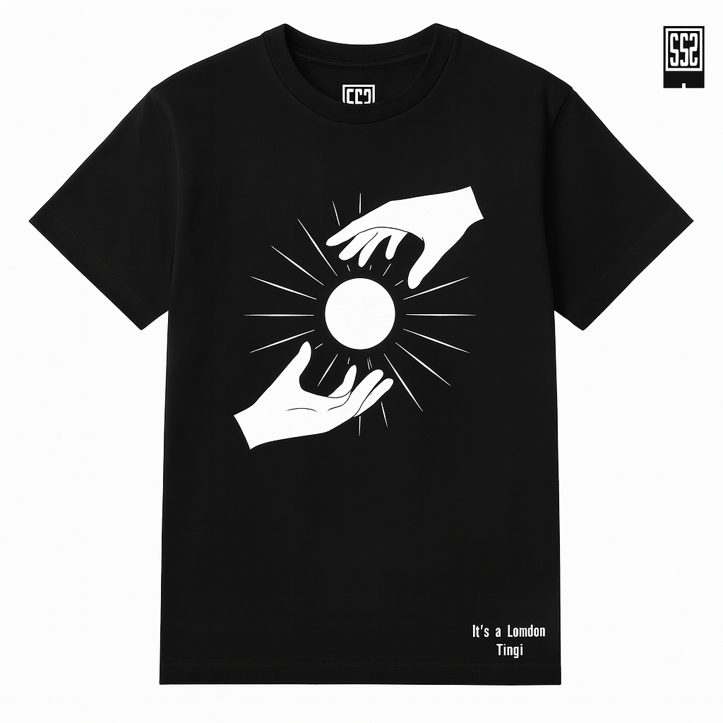 This minimalist black-and-white design captures two hands exchanging a radiant orb — a symbol of connection, energy flow, and creation. A tribute to the awakening of human potential, crafted for those who move with purpose.